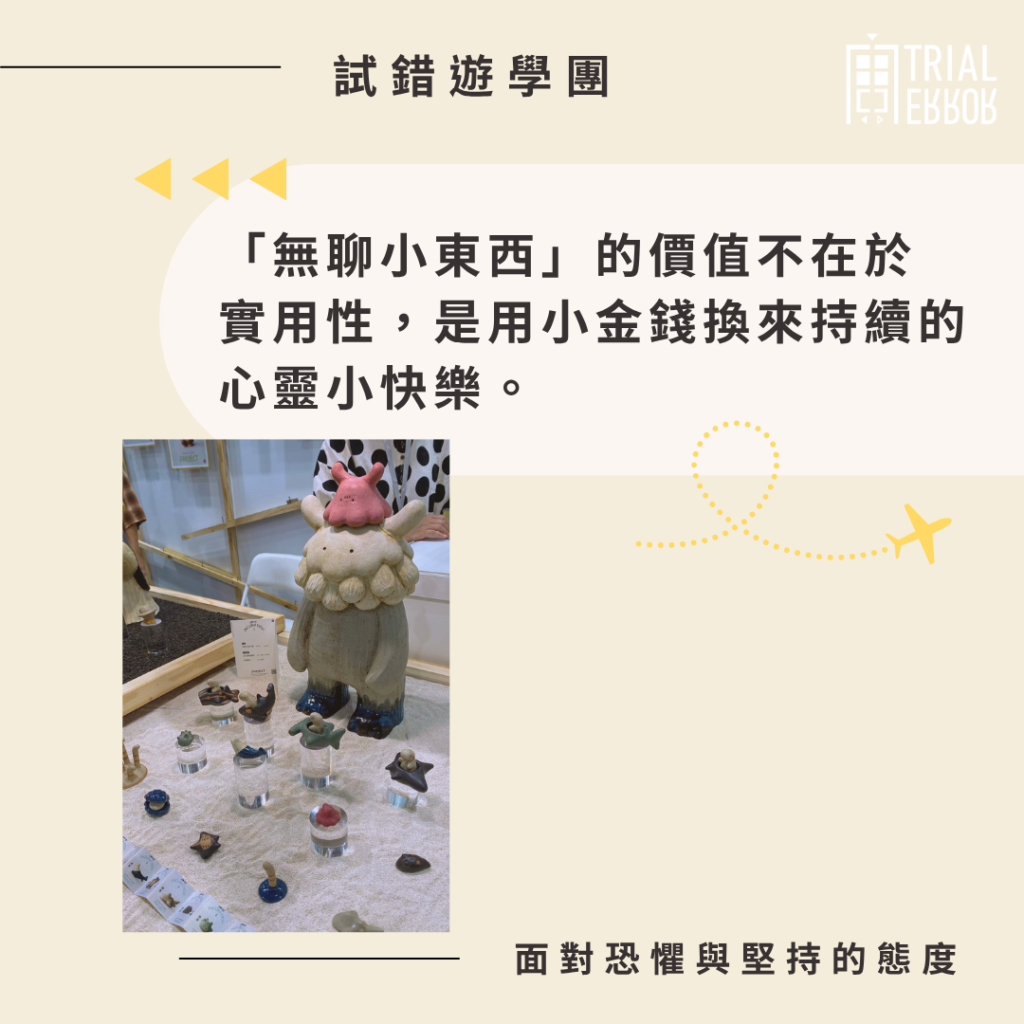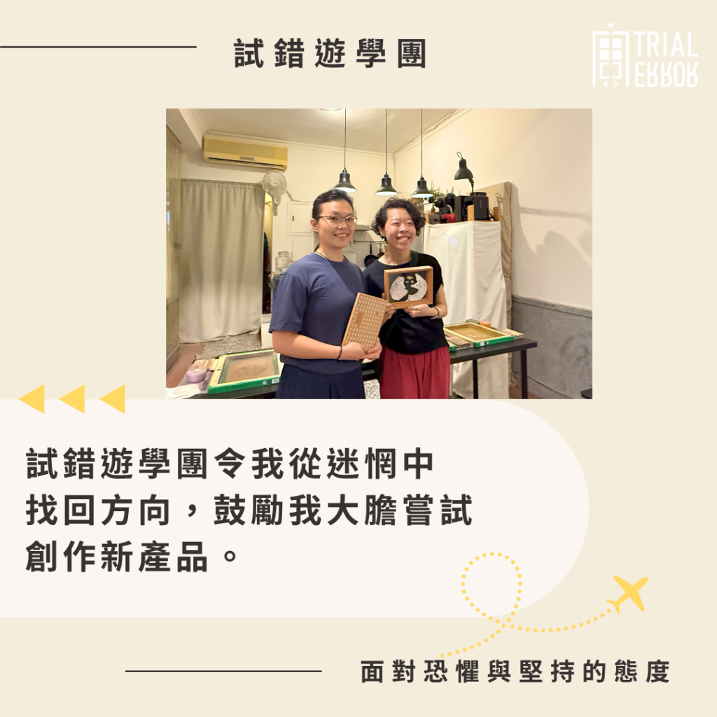 試錯遊學團令我有一種從迷惘中找回方向的感覺,看到亦親身體會到「小東西」的作用,鼓勵我大膽嘗試創作新產品,或許依然「唔等洗」,但若某個瞬間能讓人心情好起來,這一點就很足夠了。也許我們都需要一些無須理由的快樂,去度過太多理由的日常。