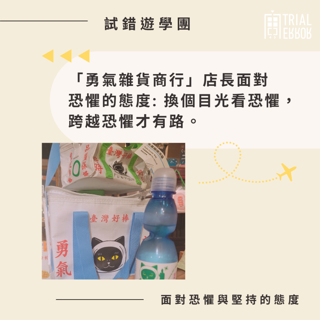 試錯遊學團另一個深刻的行程是拜訪「勇氣雜貨商行」。一踏入店內,店長對客人說:「我們賣的是勇氣喔。」一句話瞬間觸動我:這句slogan很有趣,勇氣怎樣賣呢?
