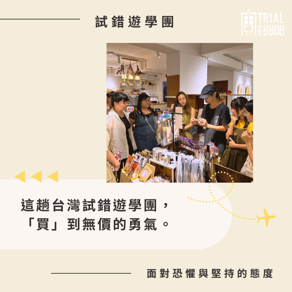 感恩能夠參與這趟台灣試錯遊學團,感謝Lab管理員的用心安排與照顧,旅程中找到要找的答案,「買」到無價的勇氣,獲益良多,得到繼續試錯的力量!